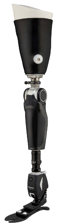 Actively powered microprocessor prosthetic knee.