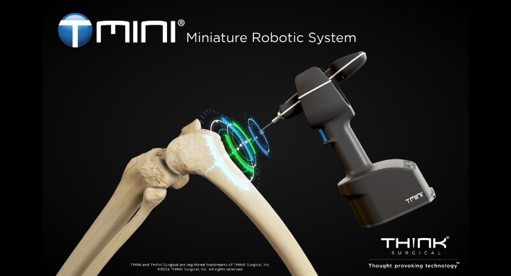 Think Surgical’s TMINI miniature robotic system has earned U.S. Food and Drug Administration (FDA) 510(k) clearance for use with Zimmer Biomet’s Persona knee system. This makes Think Surgical the only company at present with a robotic system that has both an implant-exclusive option with the Persona knee and an open platform for implants from multiple other manufacturers for total knee replacement. The company also boasted that the strategy supports two distinct customer segments: one that prefers an open platform where a range of implants can be chosen, and another that prefers an exclusive option with the Persona knee. The Persona knee, which launched in 2021, is the first implantable device approved to collect data on an individual’s progress after a total knee replacement—vital information securely relayed to a cloud-based platform for the orthopedic surgeon to review. Last week, the company also began a partnership with Medacta to support its GMK Sphere and GMK SpheriKA knee implants on the TMINI miniature robotic system. Earlier this summer, Think Surgical won an FDA nod for its TMINI 1.1 system software as well. “TMINI addresses surgeon demand for ergonomic, wireless, handheld robotic systems and we believe this will accelerate adoption of robotics in knee procedures, particularly in the out-patient setting,” said Think Surgical’s CEO, Stuart Simpson.