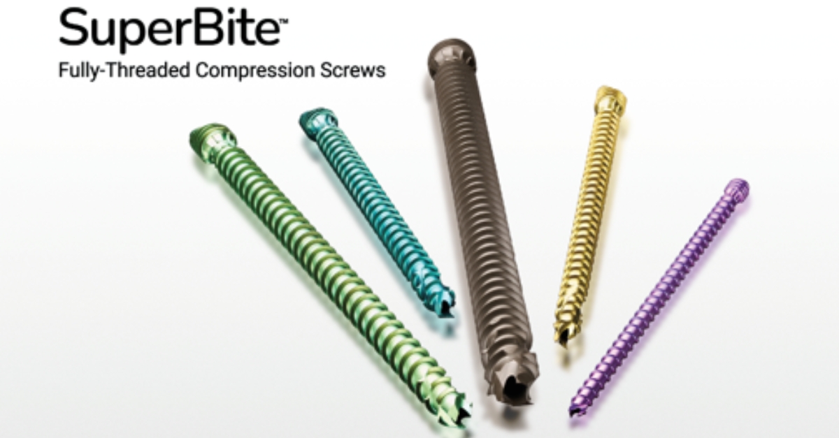 The SuperBite screws were engineered for advanced compression via a variable thread pitch and optimized headless design.