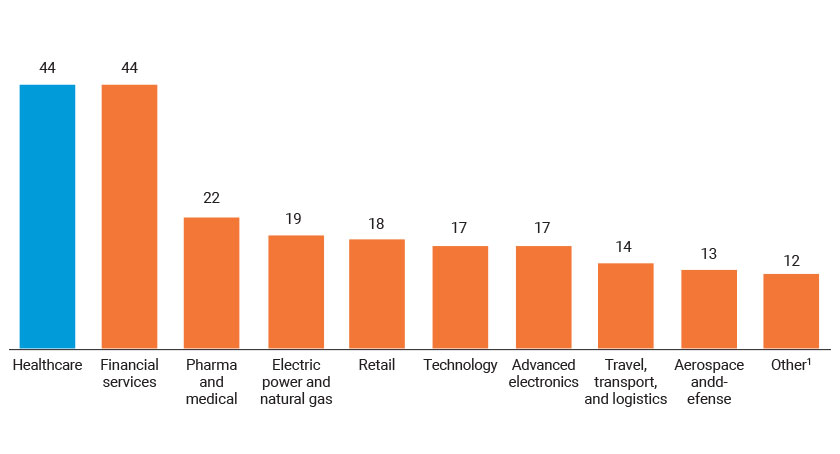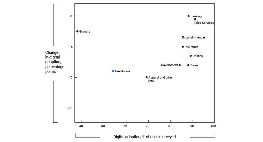 Table 1: Adoption of digital tools by sector as defined by users who have interacted digitally with an industry within the prior six months of completing a McKinsey survey (results published October 2022).1