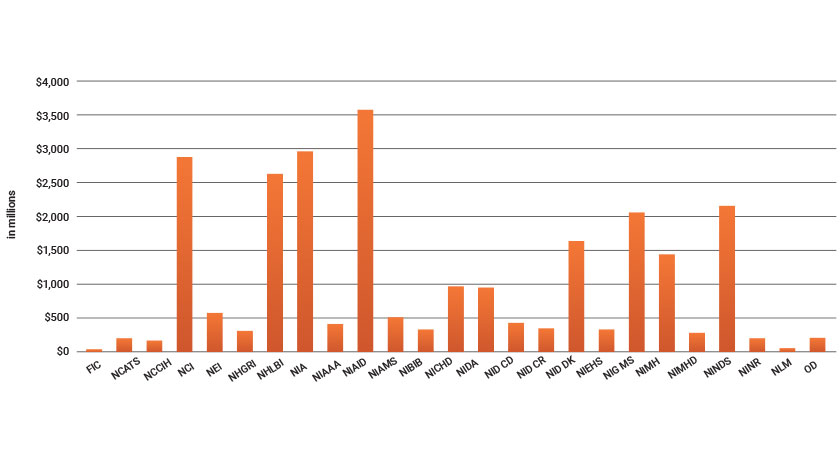 Table 1: NIH funding in 2023 by institute/center (in millions).3