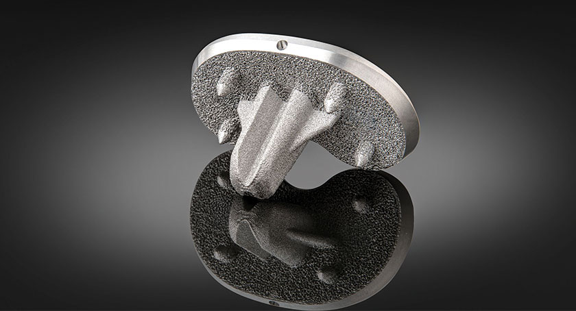 The Truliant porous tibial tray, a 3D-printed tibial knee implant. Photo: Exactech